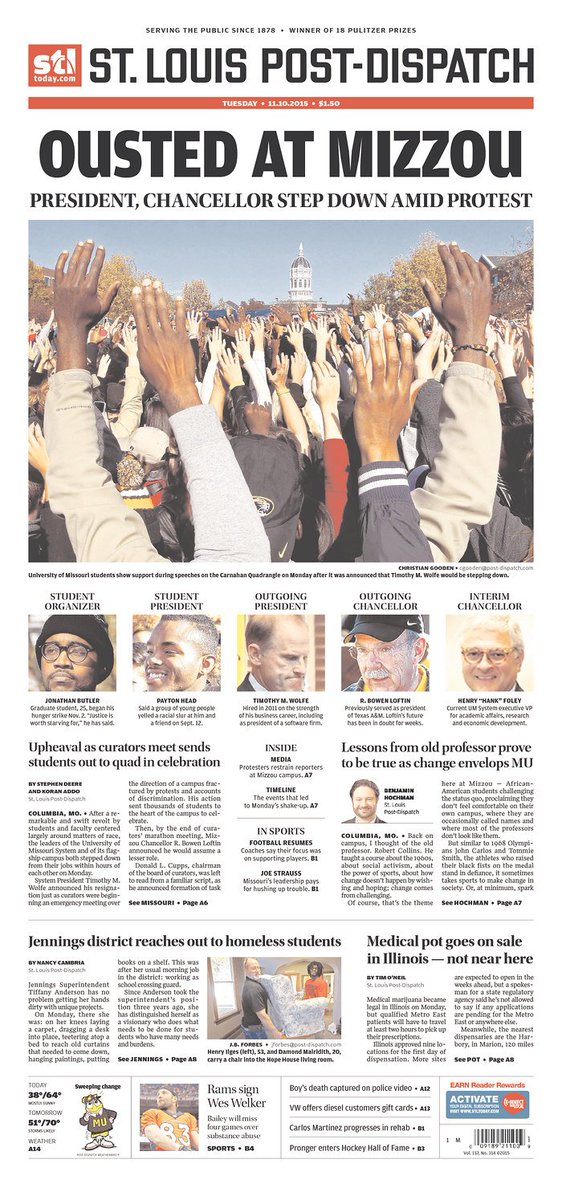 Front pages around the U.S. look to #Mizzou today http://www.poynter.org/news/mediawire/383796/front-pages-around-the-u-s-look-to-mizzou-today/ …pic.twitter.com/o1wD1BYeLd