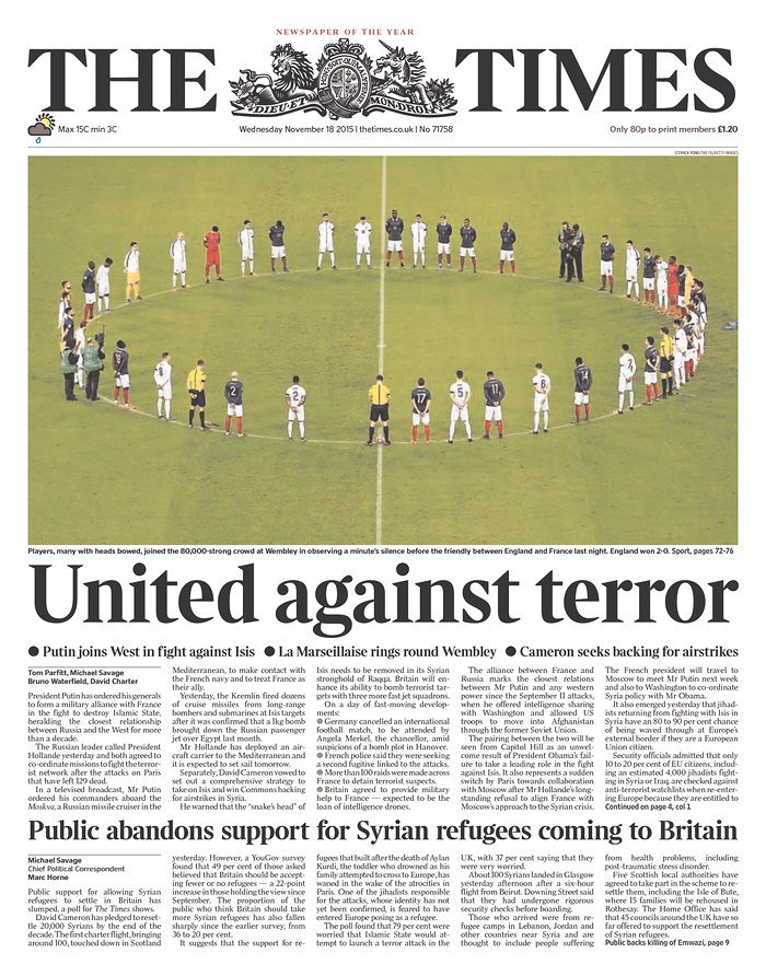 On front pages today, unity on the pitch, closing borders in the U.S. http://www.poynter.org/news/mediawire/385603/on-front-pages-today-unity-on-the-pitch-closed-borders-everywhere-else/ …pic.twitter.com/UtOYeKCb8z