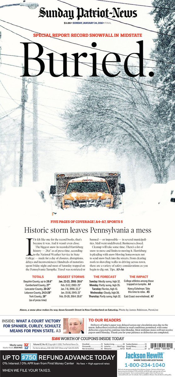 Front pages on Sunday show the battle against #blizzard2016 http://www.poynter.org/2016/front-pages-on-sunday-show-the-battle-against-blizzard-2016/392833/ …pic.twitter.com/QMWVRnhWJz