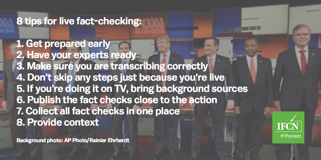 Are you live fact-checking tonight's debate? Here are a few tips http://www.poynter.org/2016/the-secret-to-live-fact-checking-be-very-very-prepared/391456/ …pic.twitter.com/WsandDLgBq