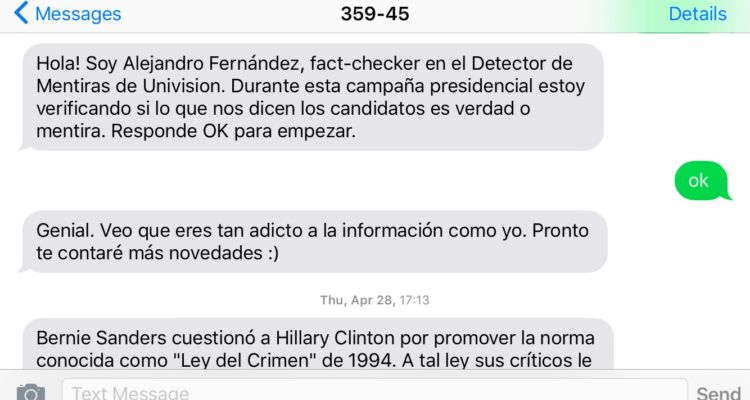 Getting fact checks to a broader audience: How about a bot that sends text messages? http://www.poynter.org/2016/did-clinton-or-trump-twist-the-facts-this-messaging-bot-will-tell-you/409457/ …pic.twitter.com/JpF3qcyR5u