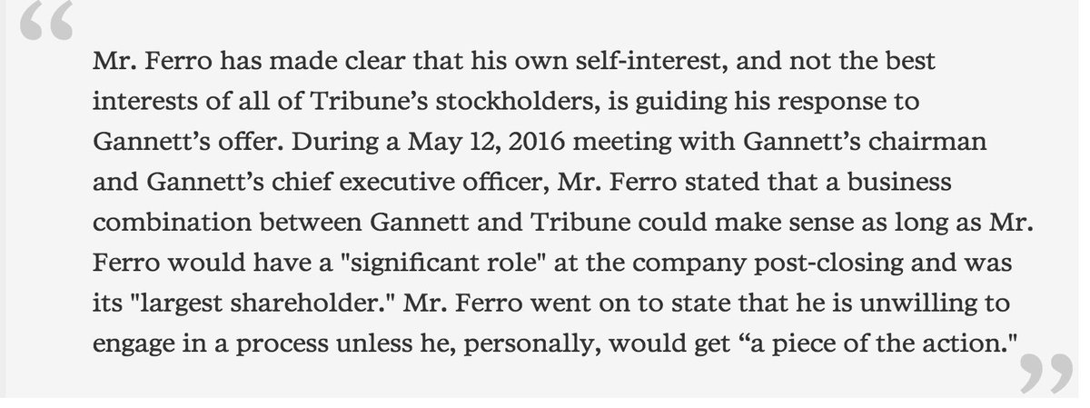 Gannett to Tribune stockholders: http://www.poynter.org/2016/gannett-slams-tribune-bosses-in-letter-to-shareholders/412940/ … Ferro said he wants “a piece of the action."pic.twitter.com/HnuJbBkEF1