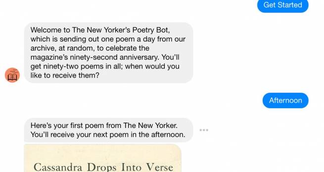 The New Yorker’s new bot will tweet 92 years worth of poetry at you http://www.poynter.org/2017/the-new-yorkers-new-bot-will-tweet-92-years-worth-of-poetry-at-you/451314/ …pic.twitter.com/OF2nLnmkmd