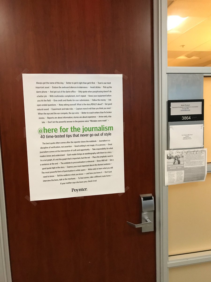 Show us a picture of where you hang your 40 time-tested tips for journalists. Tag us @Poynter and #PoynteratONAhttps://twitter.com/KatePickert/status/917411564772192257 …