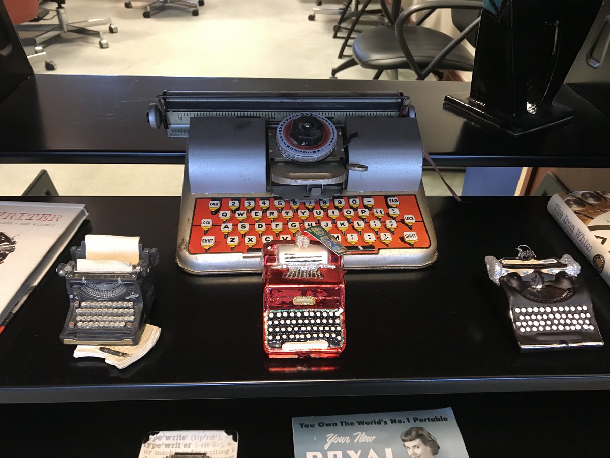 Today's photo fun: @RoyPeterClark has his typewriter collection on display in the library. We love the tiny ones best.pic.twitter.com/IIUQk7bZ1B