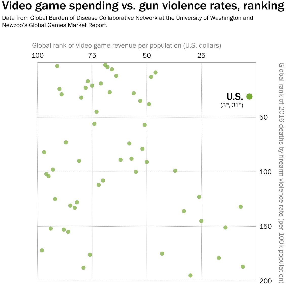 Trump will talk about video games and gun violence today. Last month, I looked at the lack of a link between the two in any other country in the world.http://www.washingtonpost.com/news/politics/wp/2018/02/22/if-video-games-spur-gun-violence-its-only-in-the-united-states/ …