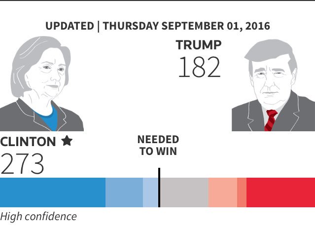 Latest @Reuters/Ipsos Electoral Map (270 EV Needed): Clinton 295 Trump 171 http://www.reuters.com/statesofthenation/?utm_source=twitter&utm_medium=Social …pic.twitter.com/WTqChocWaT