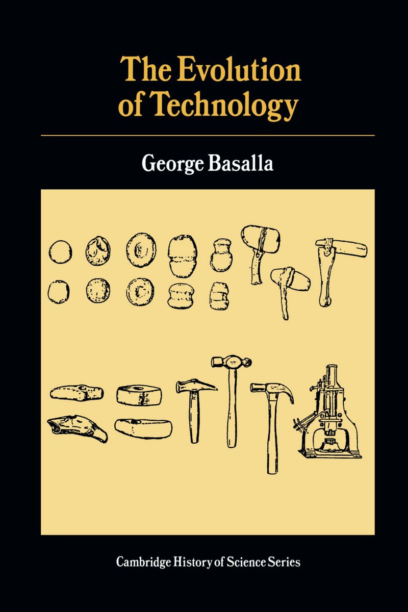 Starting out with some book recommendations: Evolution of Technology by George Bassalla: https://amzn.to/2Rovi4x presents an evolutionary perspective of the history of technology. This one contributed the infamous term ”skeuomorphism” during the advent of flat UIs.pic.twitter.com/mNZSbvNoyb