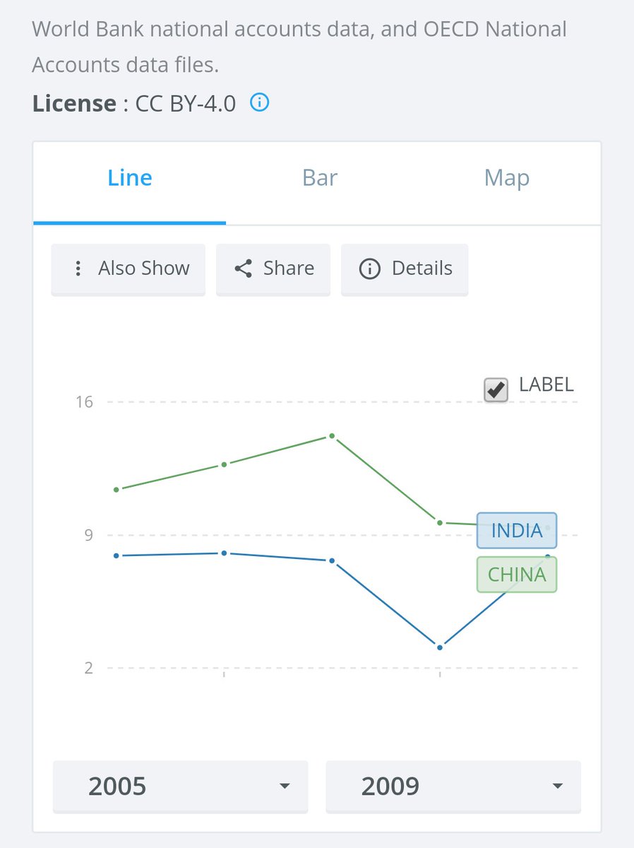 @WorldBank Pic 1: India-China GDP growth 5 yrs *prior* to Economist Magazine prediction. Pic 2: India-China GDP growth 5 yrs *post* Economist Magazine prediction. PS: Thanks for this 2010 cover. Didn't care enough about@TheEconomist/@ARobertsjourno to remember it.pic.twitter.com/8exxNHJkx9