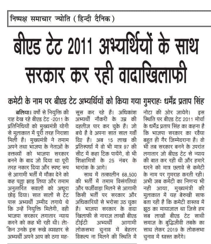 Please justice for BTC. आपने अपने राजनीति के चक्कर में हमारा भविष्य खराब करने की पूरी कोशिश की है। आपने बीएड को प्राइमरी भर्ती में लाने का कोई उचित कारण भी तो नहीं बताया आपको पता है ना उ0 प्र0 में प्राइमरी शिक्षक प्रशिक्षक पर्याप्त मात्रा हैं।फिर भी ये नादानियाँ? #justice4btc