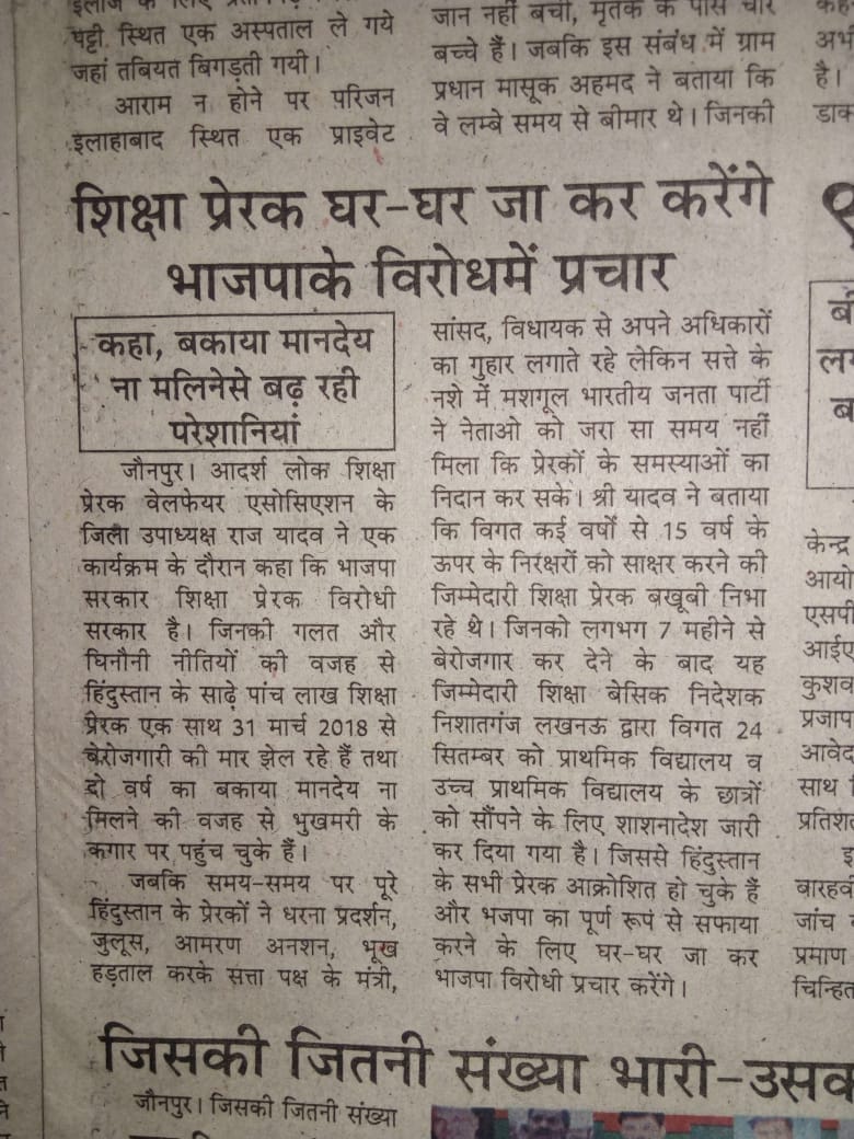 साहब बीजेपी सरकार कितने झूठ बोलेगी साक्षर भारत मिशन के 5 लाख शिक्षा प्रेरक देश के बेरोजगार कर दिए गए 7 साल से करोड़ों नवसाक्षर को साक्षर किया 2 साल से मानदेय नही मिला साक्षरता प्रेरक को भूखे मर रहे कोई देखने वाला नही सरकार कहती है यही है अच्छे दीन साहबpic.twitter.com/x8pr7HZLU0
