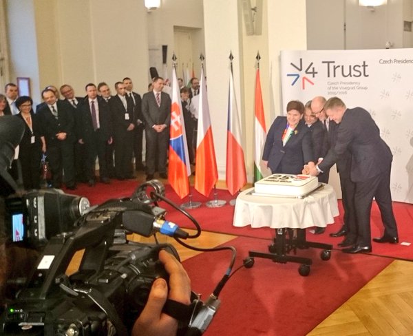#V4 leaders cut a cake to celebrate the 25th anniversary of the Visegrad Group. #Visegrad25pic.twitter.com/g0Y7KLw2Xx