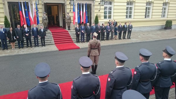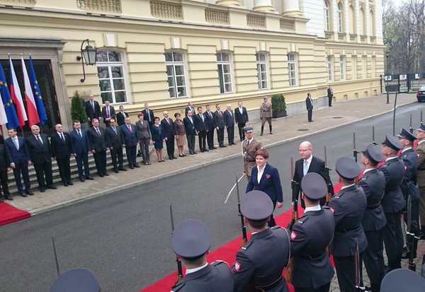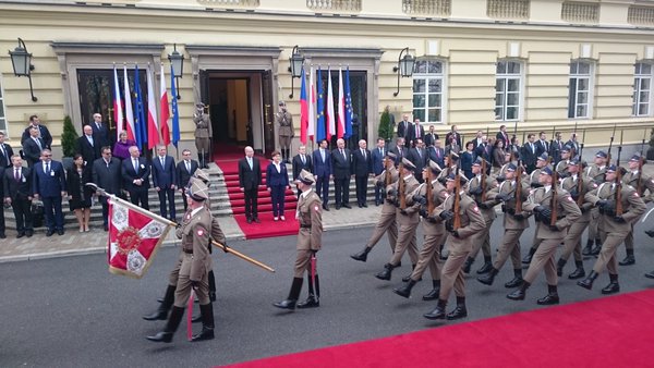 Official arrival ceremony. PM @BeataSzydlo and PM @SlavekSobotka review a guard of honour.pic.twitter.com/NzIjKEbe1r