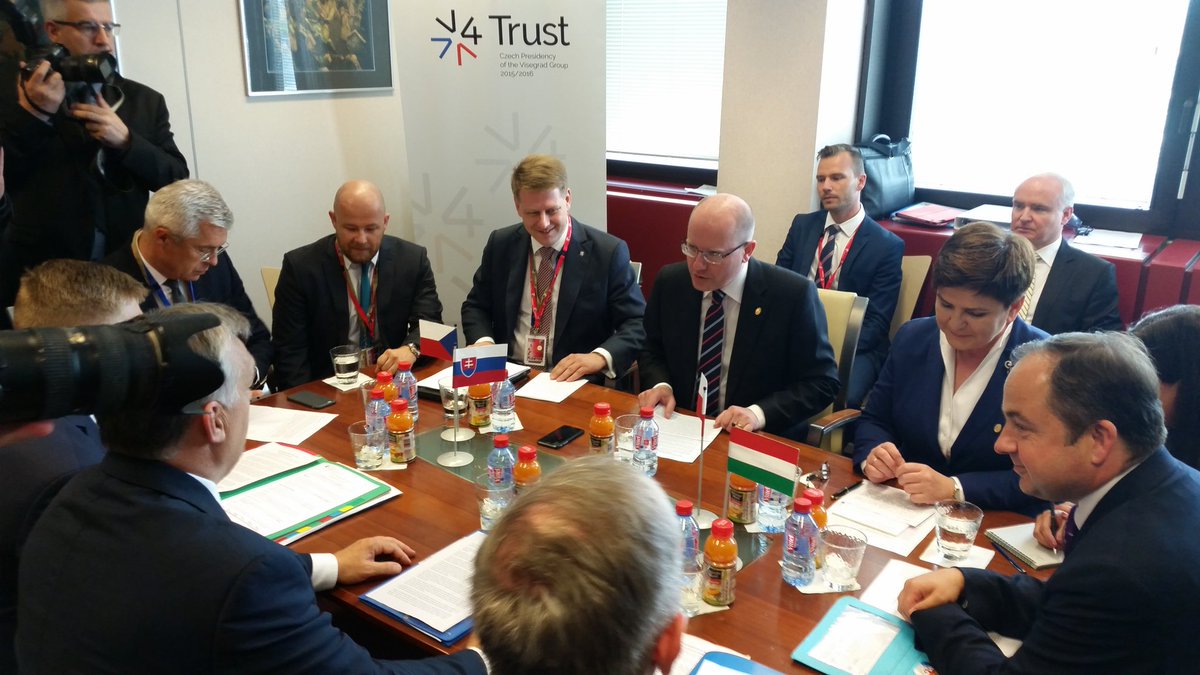 #Brussels: PM @BeataSzydlo takes part in a #V4 coordination meeting ahead of #EUCO.pic.twitter.com/EYHSPc38EY