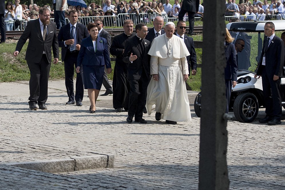 His Holiness Pope Francis and PM @BeataSzydlo have paid tribute to the victims of Auschwitz #AuschwitzBirkenaupic.twitter.com/9XjrBFbCt1