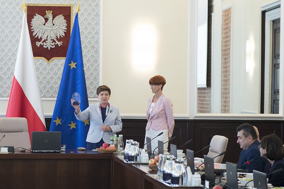 PM @BeataSzydlo has received the @ELFAC3 award for supporting families, including the #Rodzina500plus benefit.pic.twitter.com/vi8Ju4Lzlj