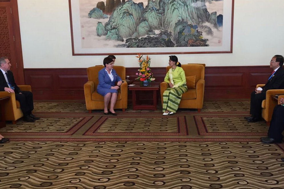 During her visit to Beijing, PM @BeataSzydlo met with Aung San Suu Kyi, State Counsellor of the Republic of the Union of Myanmar.pic.twitter.com/RzLMtYvckr