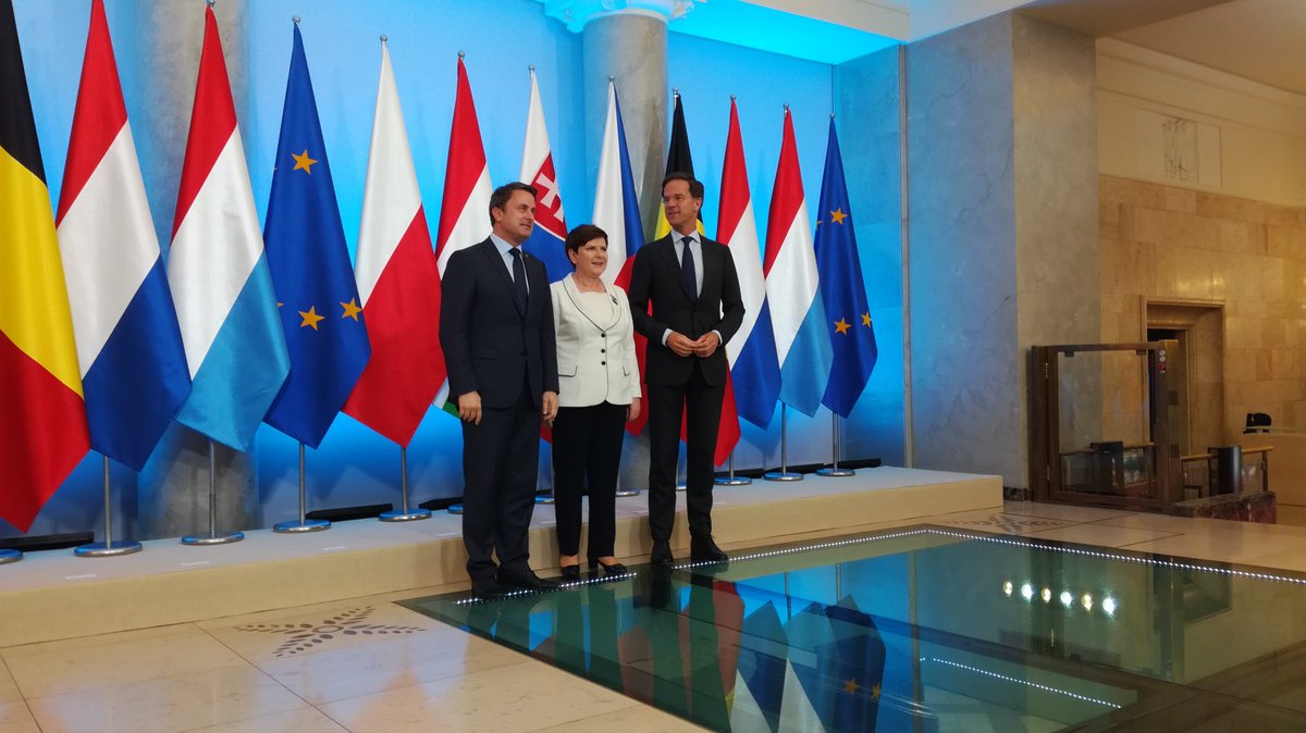 PM @BeataSzydlo and Dutch PM @markrutte have welcomed to the Chancellery the PM of Luxembourg @Xavier_Bettel. #PLV4Prespic.twitter.com/7J3J3YSEMm