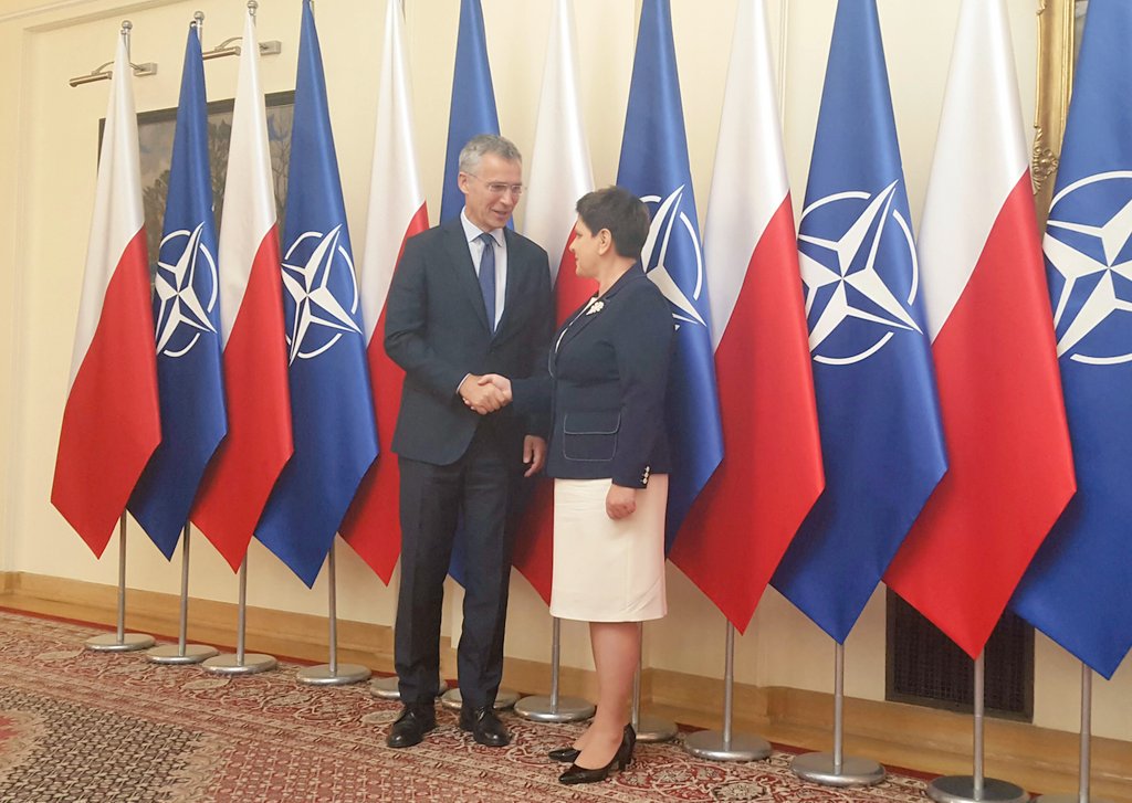 PM @BeataSzydlo has welcomed NATO Secretary General @jensstoltenberg to the Chancellery of the Prime Minister.pic.twitter.com/L049Ir82LL