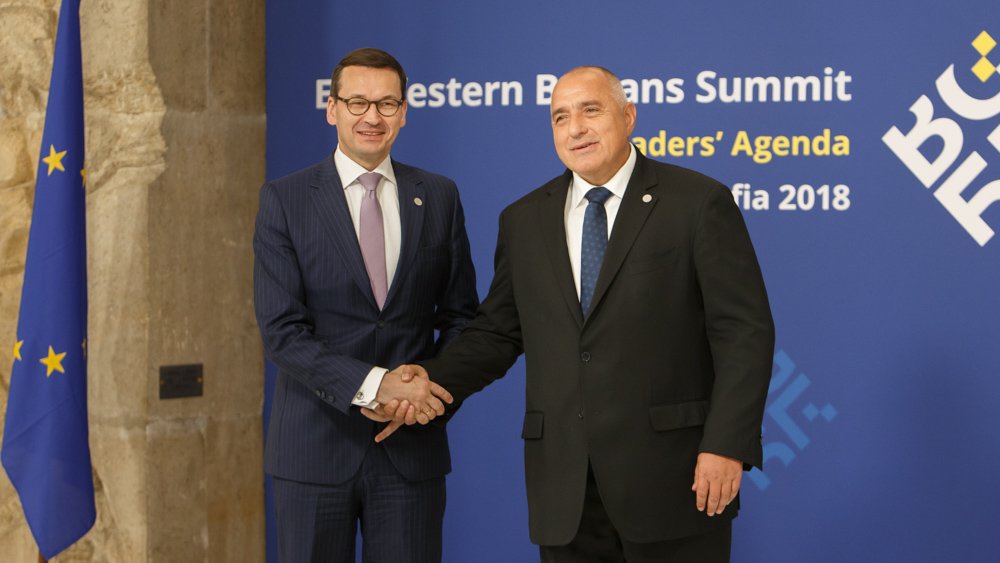 Prime minister of #Bulgaria @BoykoBorissov welcomed PM @MorawieckiM. #EU2018BG #EUWesternBalkansSummit @EU2018BGpic.twitter.com/yNo2BzvJft