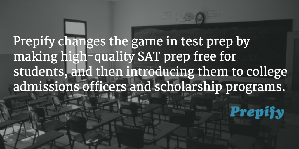 @Prepify prepares students for the SAT for free -http://bit.ly/1OVZT4J7:16 AM - 19 Jan 2016 · Details4 retweets 2 likes