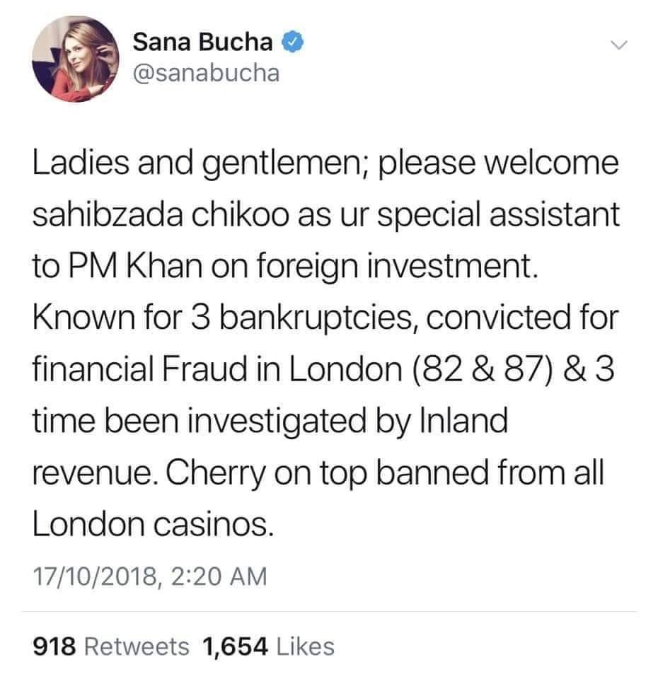 He highly qualified to have this position will do fraud and would share with PTI ATM and Imran Khan will be oblivious to this because money makes the mare go lious
