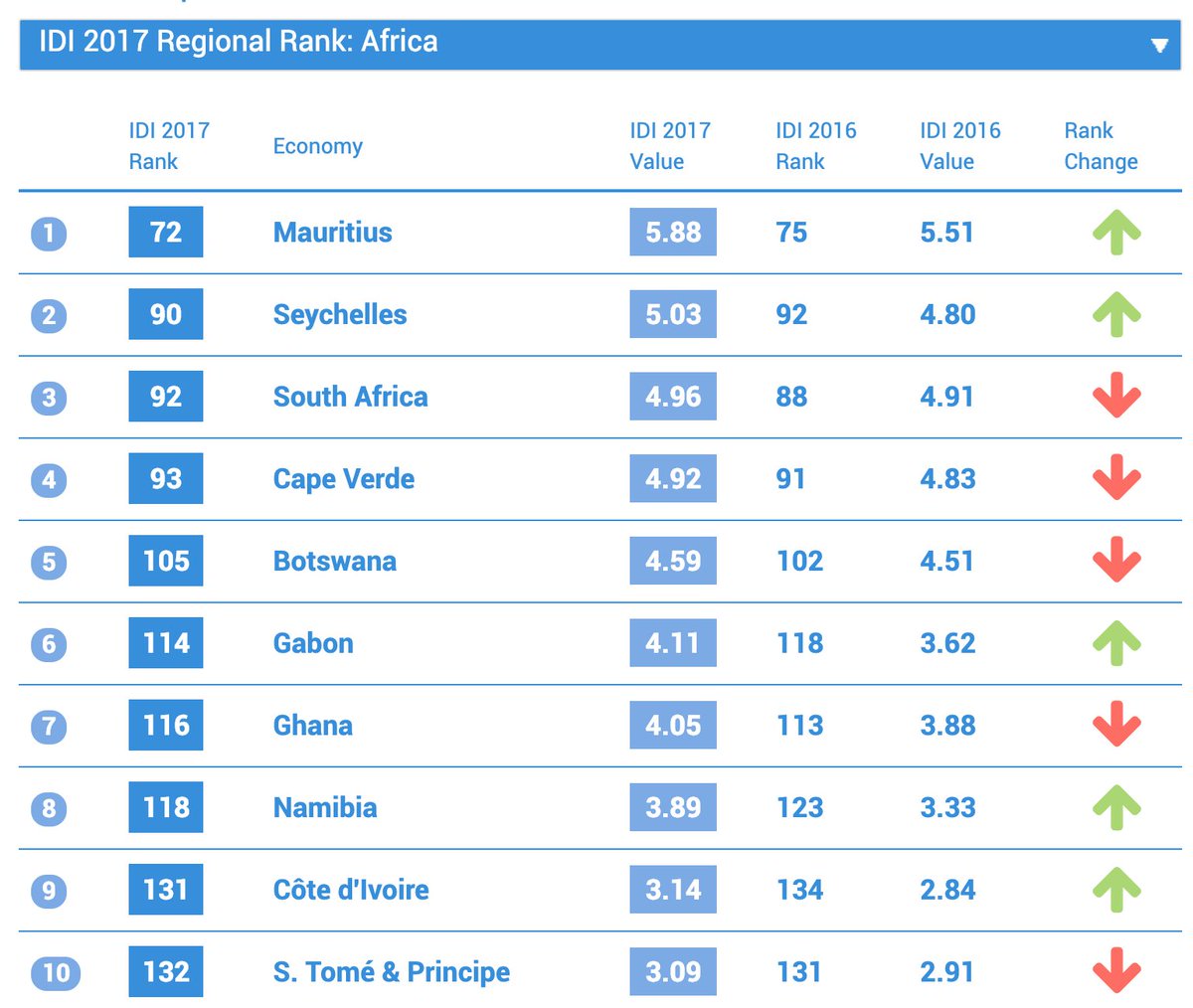 est bien parti pour réaliser son ambition de hub numérique : il a gagné 10 places dans le classement mondial de l’indice de dvpmnt de l’Internet, et est, le 6e pays le plus performant d’Afrique dans les