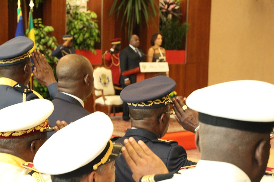 Le @PresidentABO recevant les vœux des Forces de Défense et de Sécurité aux côtés de @Sylviabongopic.twitter.com/wZzV5cr3Ev