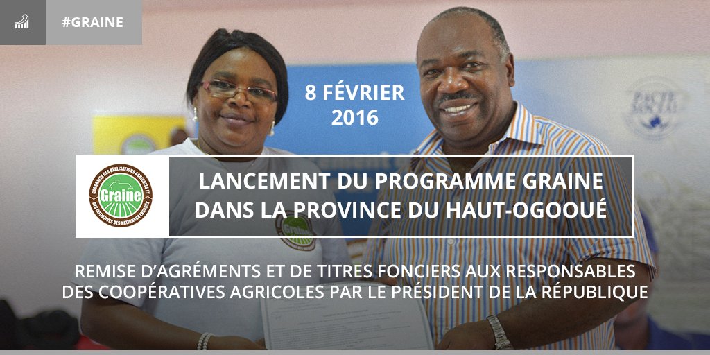 Le @PresidentABO sera à Franceville du 7 au 9 fév. pour le lancement du programme #GRAINE dans le Haut-Ogooué (1/2)pic.twitter.com/LHlqTcbOYn