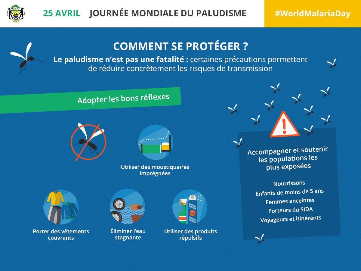 Journée Mondial du Paludisme - Les bons gestes à adopter pour se protéger ! #WordlMalariaDaypic.twitter.com/YgUhzwzXoV