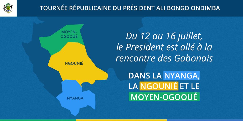 Cette semaine, le @PresidentABO a parcouru 3 provinces du #Gabon : la Nyanga, la Ngounié et le Moyen-Ogooué. 1/2pic.twitter.com/Kh0GpFQvy8