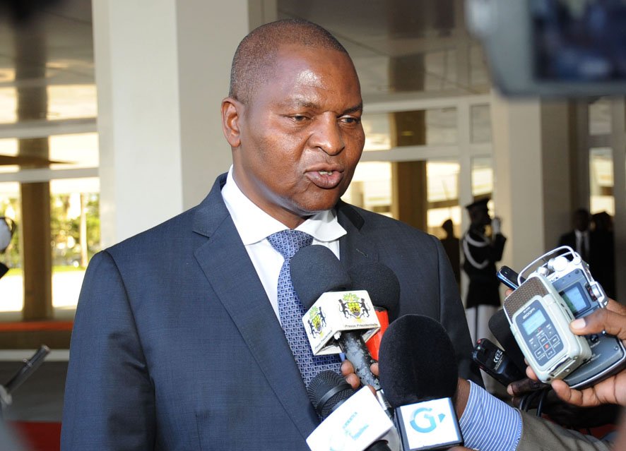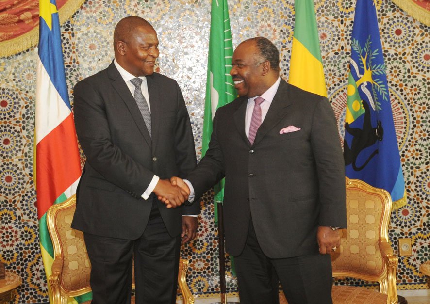 Le Chef de l’ État, @PresidentABO a reçu cet après-midi son homologue Faustin Archange Touadéra au Palais présidentiel, en visite de travail à #Libreville.