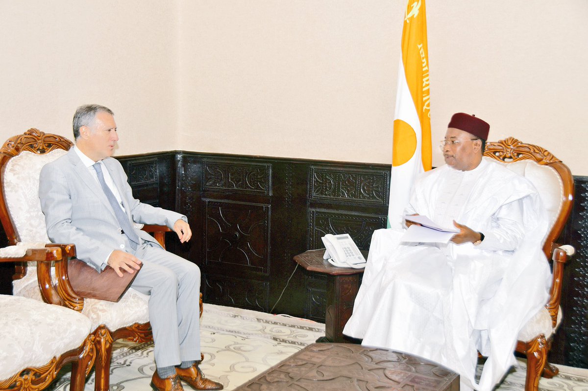 Le Président de la République, Chef de l'Etat SEM @IssoufouMhm a reçu, ce vendredi 1er juin 2018, l’Ambassadeur de #France au #Niger, SEM Marcel Escure, venu lui présenter l’agenda de sa visite officielle à #Paris prévue le 4 juin prochain: https://www.presidence.ne/audiences-et-sommets-1/2018/6/1/le-prsident-de-la-rpublique-sem-issoufou-mahamadou-reoit-lambassadeur-de-france-au-niger …pic.twitter.com/vfTYDAhdFi