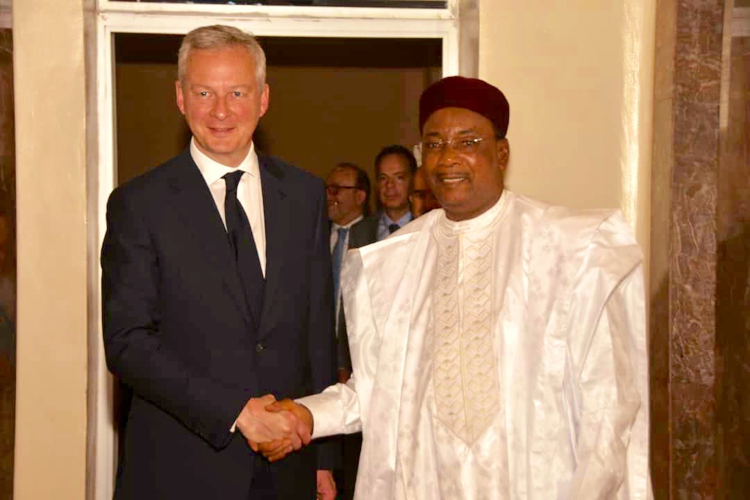 Le PR, SEM @IssoufouMhm a reçu, ce jeudi 28 mars 2019, le Ministre français de l’Economie et des Finances, M.@BrunoLeMaire, présent à #Niamey où il prend part à la réunion des Ministres des Finances de la zone franc qui se tient dans la capitale nigérienne:https://www.presidence.ne/audiences-et-sommets-1/2019/3/28/le-prsident-de-la-rpublique-issoufou-mahamadou-sentretient-avec-le-ministre-franais-de-leconomie-et-des-finances …pic.twitter.com/rcW28Arpmc