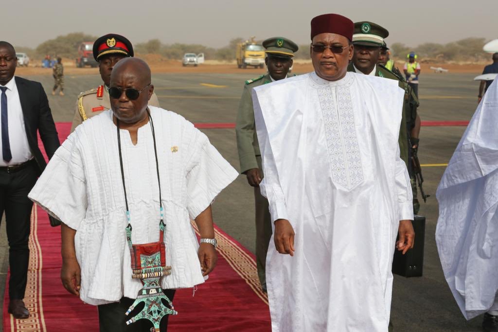 A noter qu’à leur arrivée à l’Aéroport de #Tillabéri, les Présidents du #Ghana et du #BurkinaFaso ont été accueillis à l’Aéroport de Tillaberi, successivement, au pied de la passerelle de leur avion, par SEM @IssoufouMhm .pic.twitter.com/WHrFOwiqD0