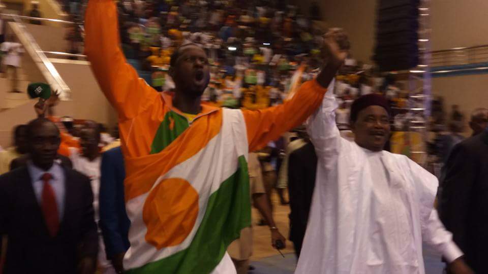 Le Président @Issoufoumhm et notre champion #Alfaga font une entrée triomphale au Palais Des Sports de #Niameypic.twitter.com/NudrjoCfjh