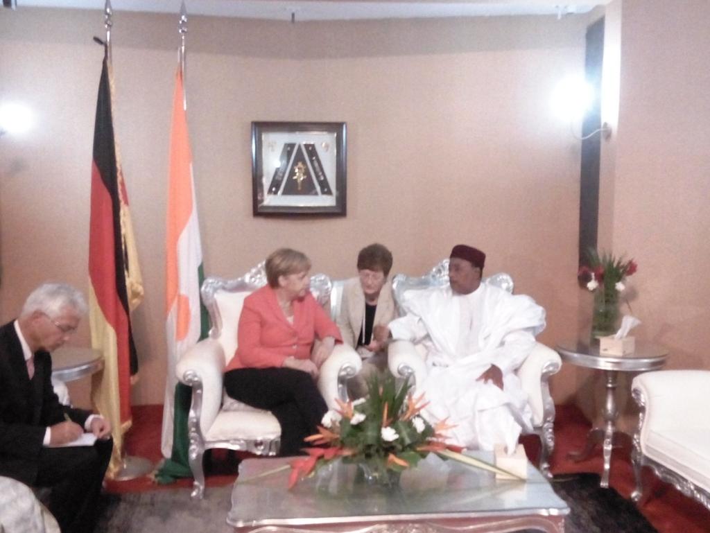 Premier entretien entre le Pdt @Issoufoumhm et Mme Angela #Merkel au salon d’honneur de l'aéroport Diori Hamani.pic.twitter.com/9zQfegNrST