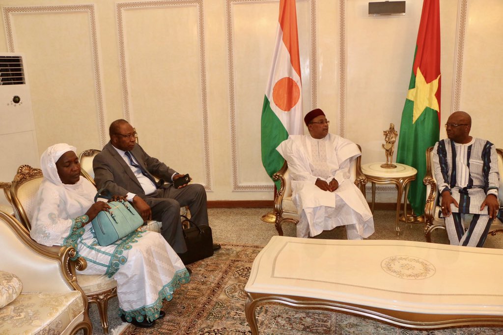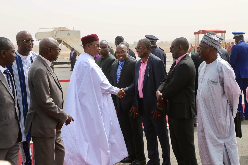 Après l’exécution des hymnes nationaux des deux pays et le passage en revue des troupes, le Président Issoufou Mahamadou a été salué par les membres du gouvernement du #BurkinaFaso et la communauté nigérienne vivant dans ce pays.pic.twitter.com/qFoKtEQFcQ