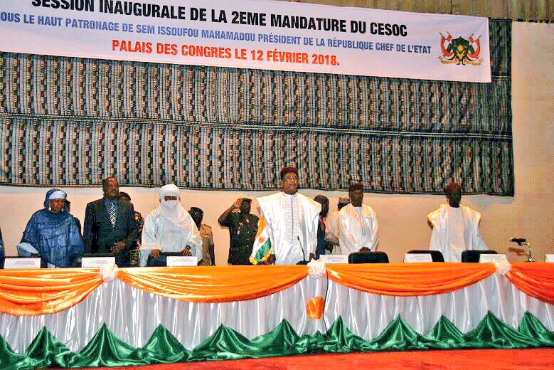 Le Président de la République, Chef de l’Etat, SEM @IssoufouMhm , a présidé lundi, 12 février 2018, la cérémonie officielle d’installation des membres du Conseil Economique, Social et Culturel (CESOC) pour la deuxième mandature 2017-2022.pic.twitter.com/XXEKROf9mt