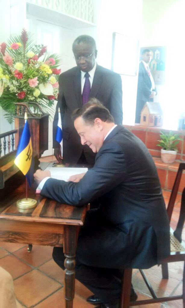 Presidente @JC_Varela firma el libro de huéspedes distinguidos de Barbados.pic.twitter.com/H1fdb2mRQA
