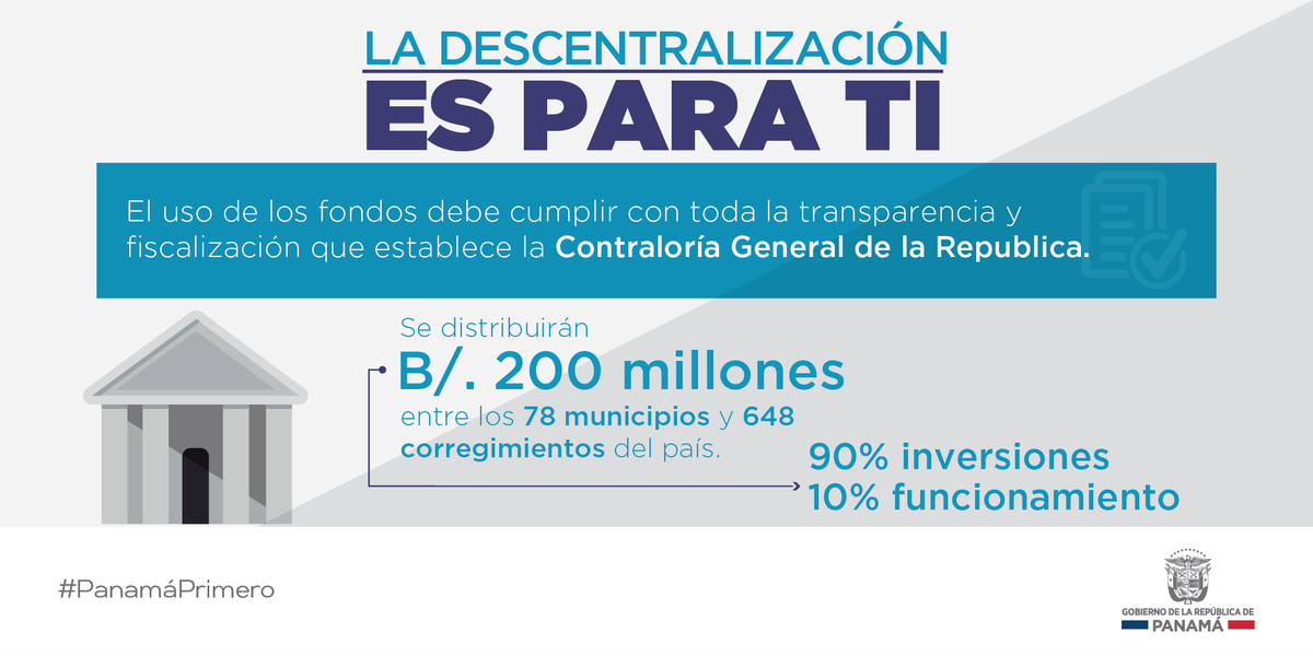 Destinamos para la #Descentralización B/. 200 millones para el desarrollo de proyectos en tu comunidad.pic.twitter.com/Z10Q0JiJ9q