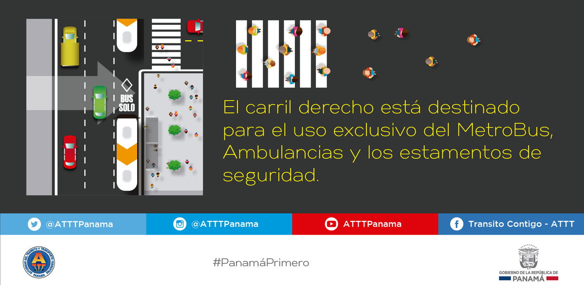 El carril derecho está destinado para el uso exclusivo del MetroBus, Ambulancias y los estamentos de seguridad.pic.twitter.com/MH7iEOFAGG