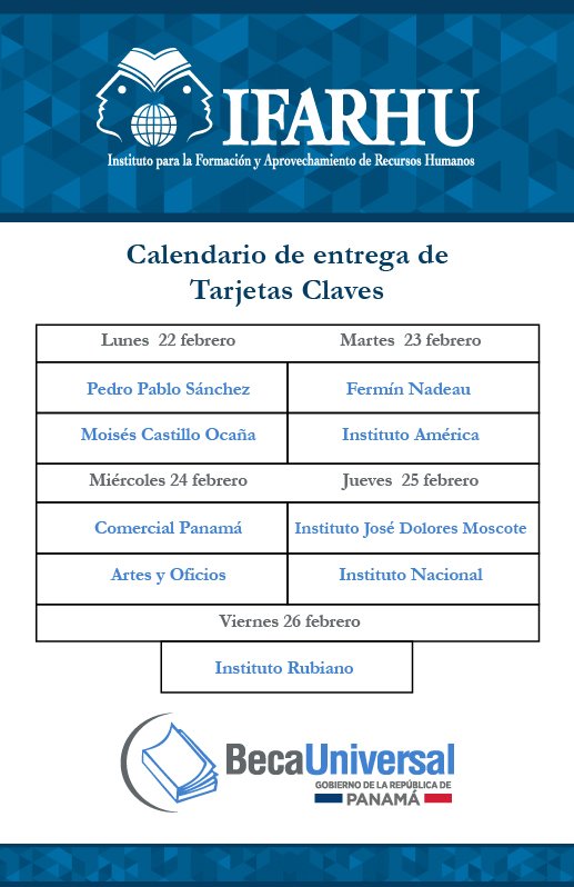 Vea aquí el calendario para la entrega de las tarjetas clave para el pago de la #BecaUniversal.https://twitter.com/IFARHU/status/699697000116260865 …