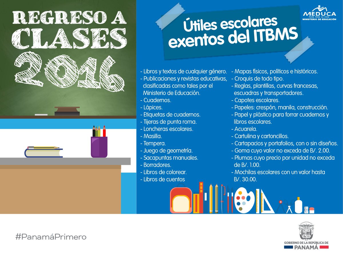 A la hora de comprar los útiles escolares de sus hijos, recuerde que estos son los que están exentos del ITBMS.pic.twitter.com/mH138rwHev