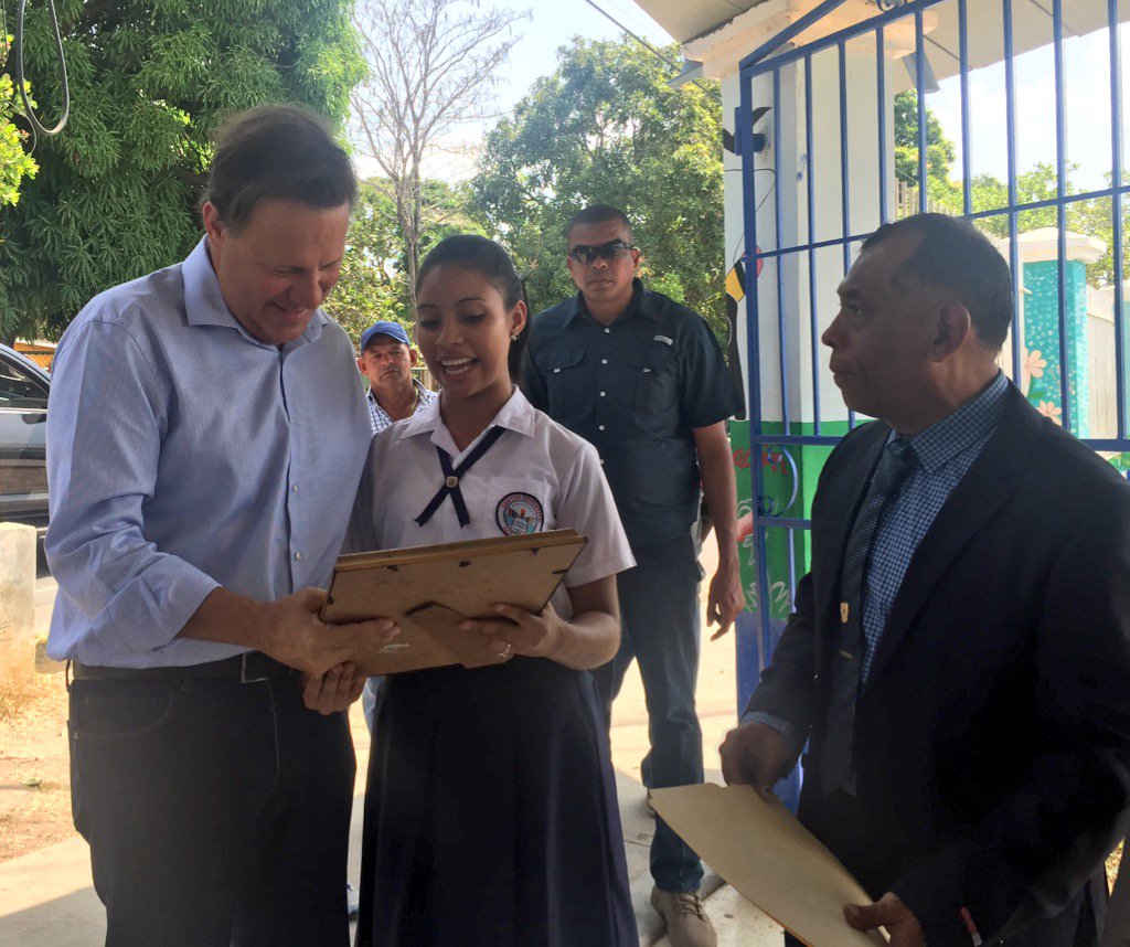 Estudiantes del C.E. San Carlos reciben al Pdte. @JC_Varela en el inicio de obra de nuevo alcantarillado.pic.twitter.com/6Cq8uU4un4
