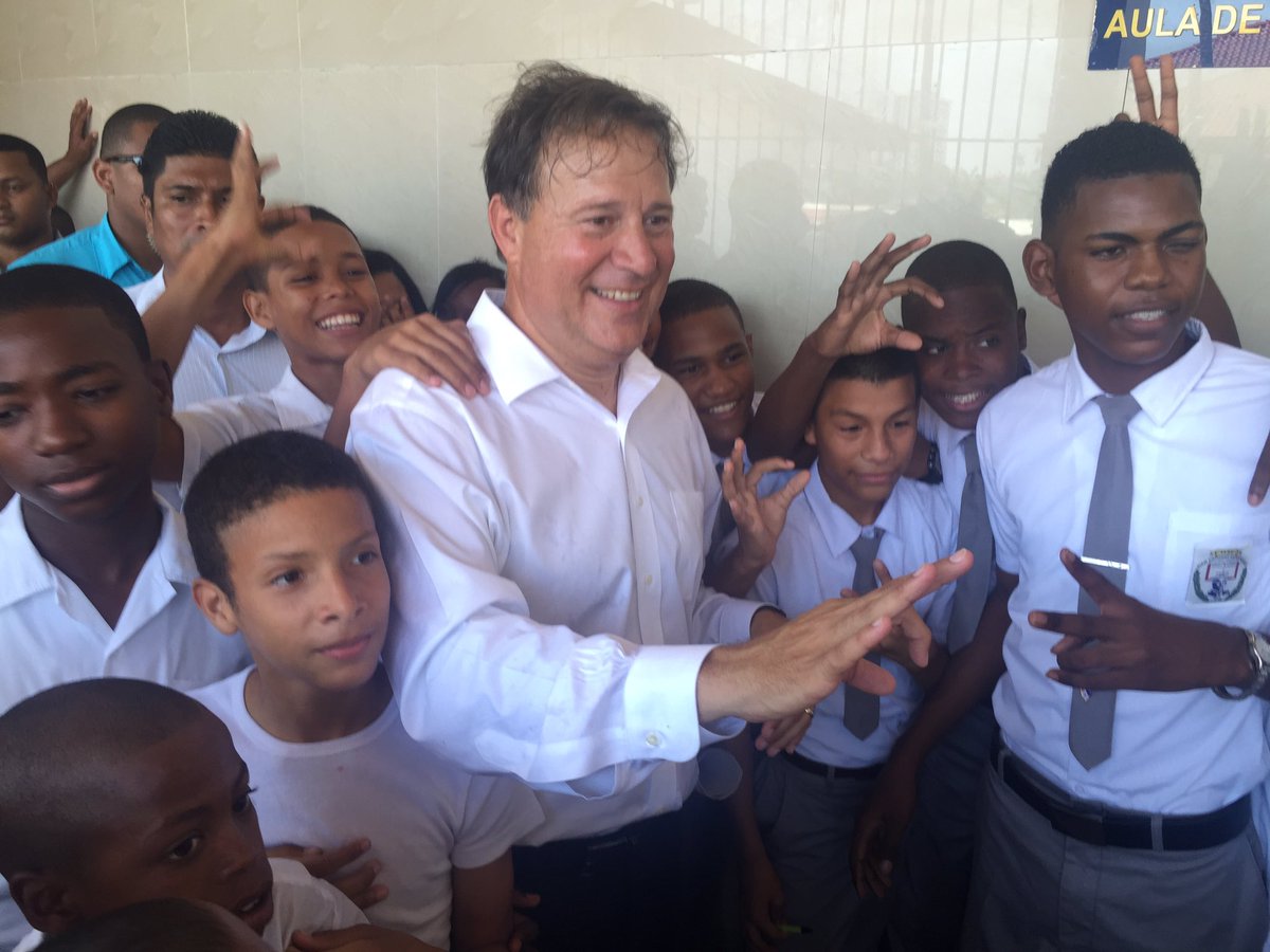 Con mucha alegría los niños del C.E.B.G Juan Antonio Hernández de Colón reciben la visita del Pdte. @JC_Varela.pic.twitter.com/7gPO7g8oxB