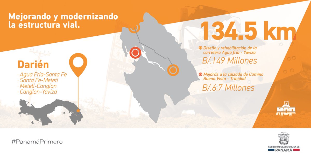 Para impulsar el sector productivo del Darién, se construye y mejora la carretera Agua Fría-Yaviza. #PanamáPrimeropic.twitter.com/KVjtXPWIrs
