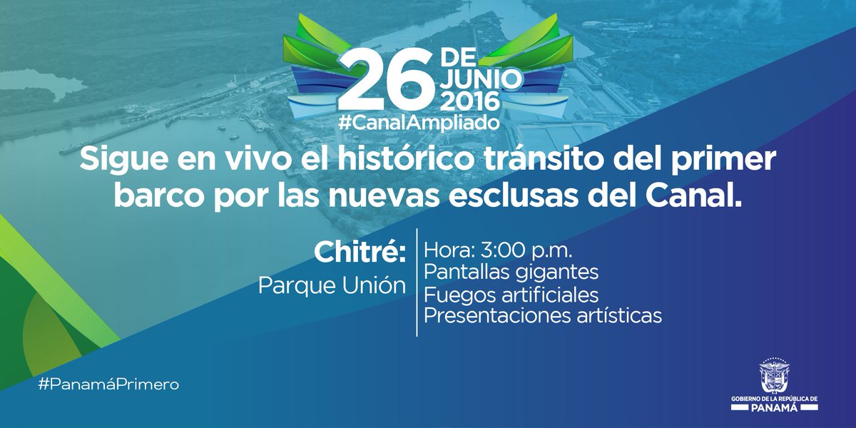 En el Parque Unión de Chitré podrá disfrutar en pantalla grande de la apertura del #CanalAmpliado. #SomosElCanalpic.twitter.com/9H7hFx7C1L