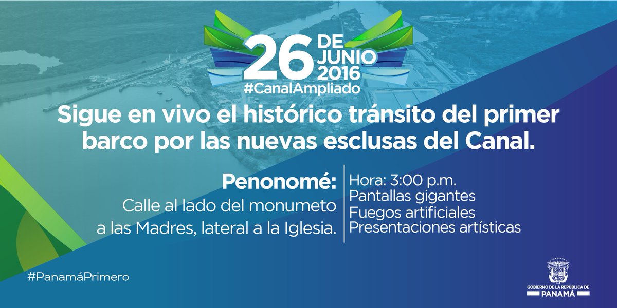 Celebra el #CanalAmpliado en Coclé desde las 3:00pm.Habrá pantalla gigante y presentación artística. #SomosElCanalpic.twitter.com/BYBjLj3EQm