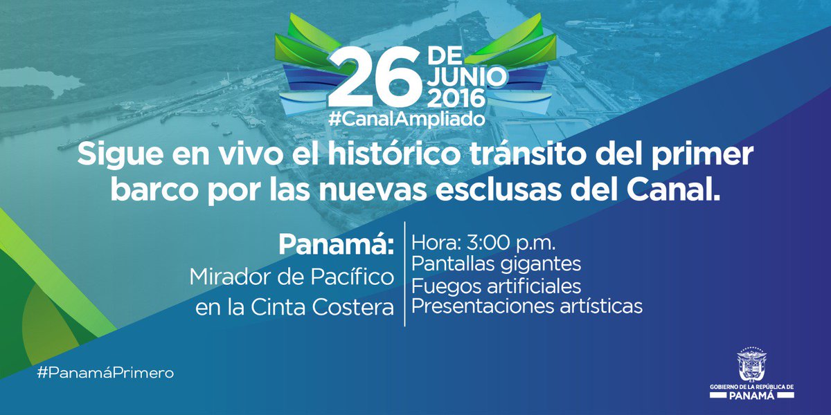 Desde las 3:00pm asiste en familia a la Cinta Costera y sé parte de la apertura del #CanalAmpliado. #SomosElCanalpic.twitter.com/os3LbCBM5F